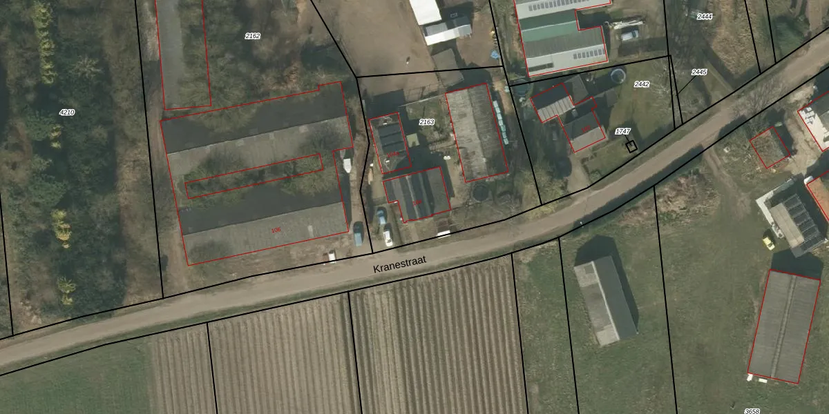 Kranestraat 104 is gelegen op kadastraal perceel HOR01M2163. Deze kadastrale aanduiding is uniek en wordt gebruikt door het Kadaster om eigendomsrechten en andere zakelijke rechten vast te leggen. Het perceel maakt onderdeel uit van de kadastrale gemeente Horst.