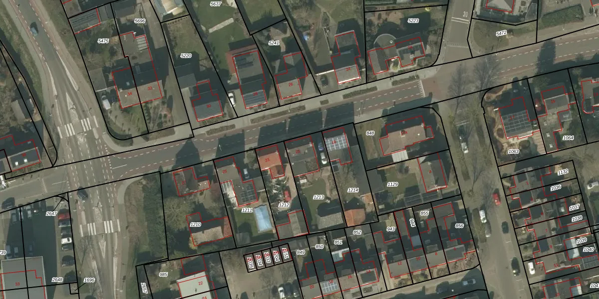 Gebruik de zoekbalk of klik op een perceel voor informatie over de adressen binnen dit perceel.