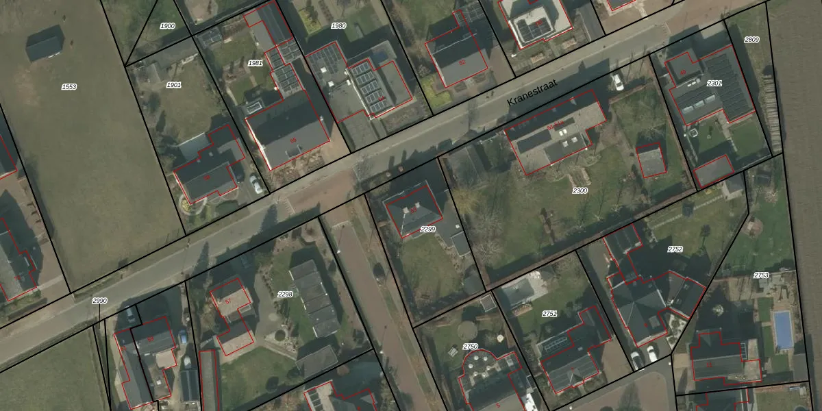 Kranestraat 53 is gelegen op kadastraal perceel HOR01M2299. Deze kadastrale aanduiding is uniek en wordt gebruikt door het Kadaster om eigendomsrechten en andere zakelijke rechten vast te leggen. Het perceel maakt onderdeel uit van de kadastrale gemeente Horst.