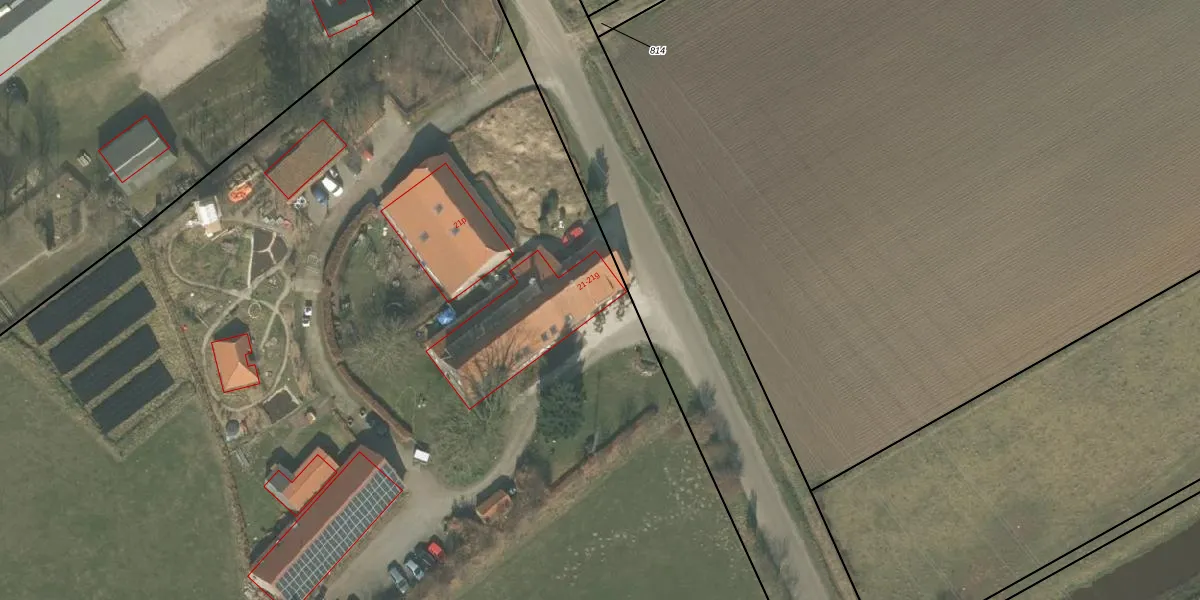 Het perceel waarop Kreuzelweg 21 staat heeft een oppervlakte van 2,2 ha. Dit is een zeer groot perceel. De perceeloppervlakte wordt geregistreerd door het Kadaster. Gedetailleerde informatie over de maten van dit perceel kunt u vinden in het rapport Kadastrale kaart met maatvoering van Kreuzelweg 21.