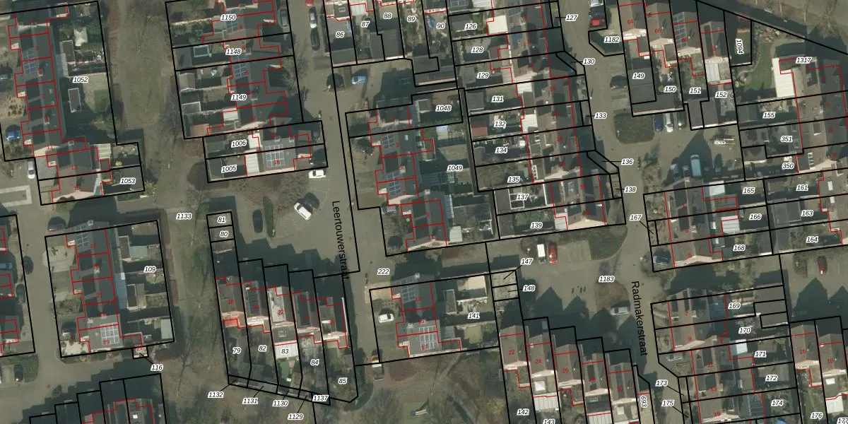 Het perceel waarop Leertouwerstraat 9 staat heeft een oppervlakte van 817 m². Dit is een groot perceel. De perceeloppervlakte wordt geregistreerd door het Kadaster. Gedetailleerde informatie over de maten van dit perceel kunt u vinden in het rapport Kadastrale kaart met maatvoering van Leertouwerstraat 9.