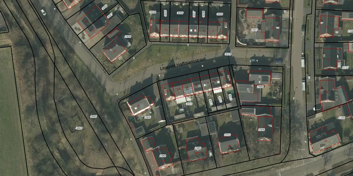 Het perceel waarop Leopold Haffmansstraat 13 staat heeft een oppervlakte van 621 m². Dit is een groot perceel. De perceeloppervlakte wordt geregistreerd door het Kadaster. Gedetailleerde informatie over de maten van dit perceel kunt u vinden in het rapport Kadastrale kaart met maatvoering van Leopold Haffmansstraat 13.