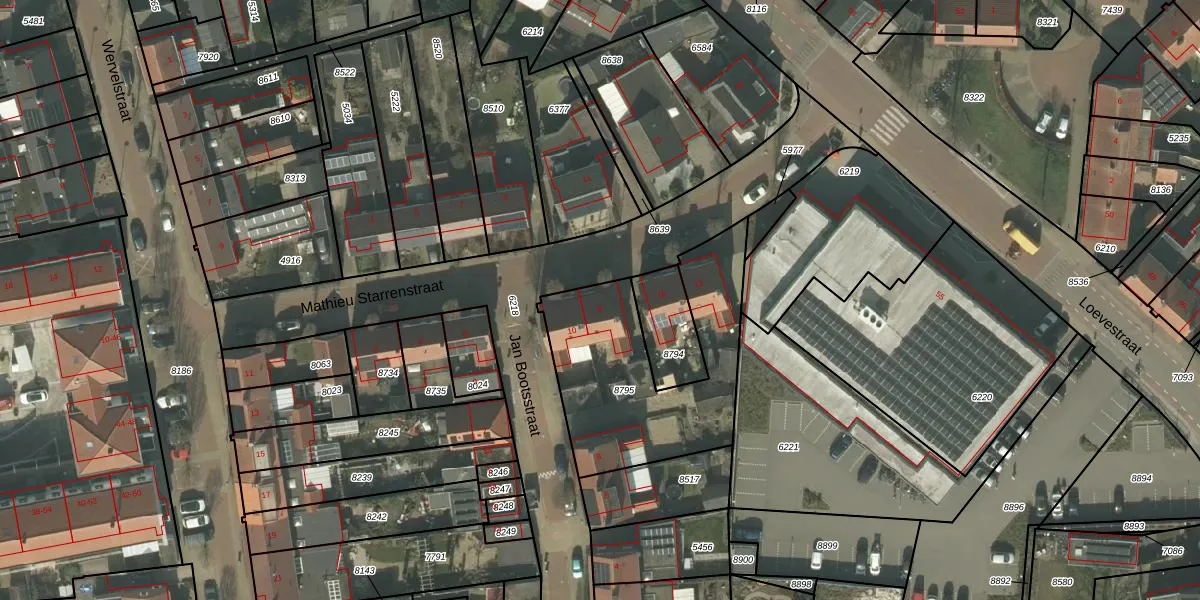 Het perceel waarop Mathieu Starrenstraat 8 staat heeft een oppervlakte van 755 m². Dit is een groot perceel. De perceeloppervlakte wordt geregistreerd door het Kadaster. Gedetailleerde informatie over de maten van dit perceel kunt u vinden in het rapport Kadastrale kaart met maatvoering van Mathieu Starrenstraat 8.