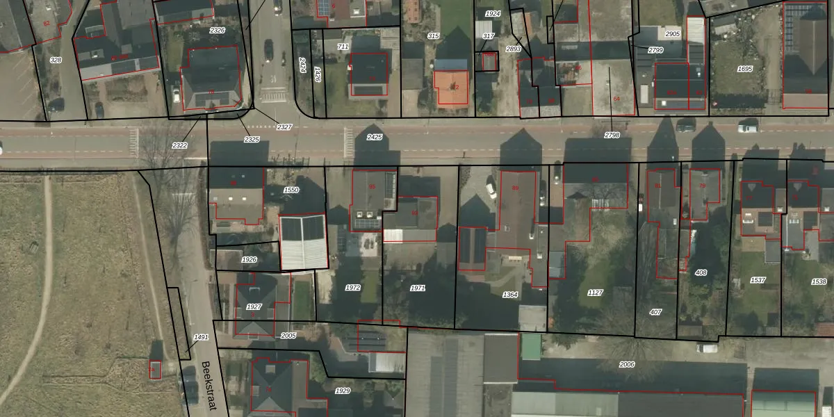 Gebruik de zoekbalk of klik op een perceel voor informatie over de adressen binnen dit perceel.