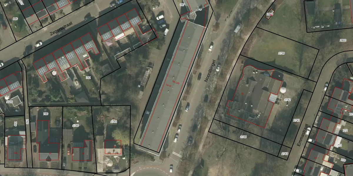 Het perceel waarop Noordsingel 104 staat heeft een oppervlakte van 1660 m². Dit is een zeer groot perceel. De perceeloppervlakte wordt geregistreerd door het Kadaster. Gedetailleerde informatie over de maten van dit perceel kunt u vinden in het rapport Kadastrale kaart met maatvoering van Noordsingel 104.