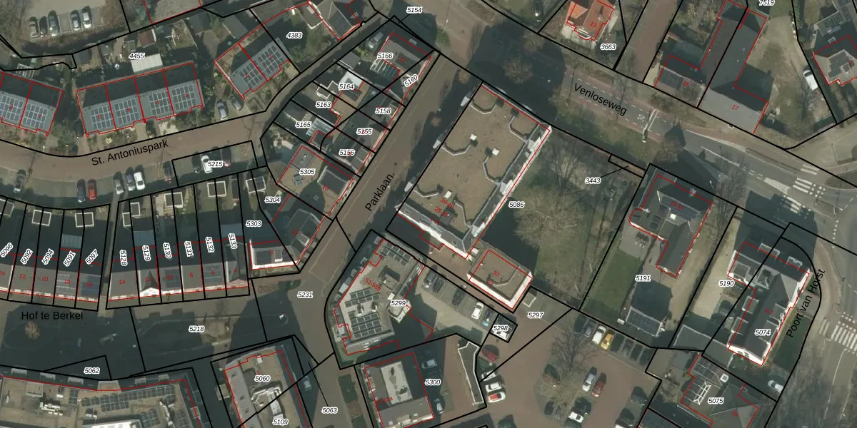 Parklaan 39 is gelegen op kadastraal perceel HOR01C5086. Deze kadastrale aanduiding is uniek en wordt gebruikt door het Kadaster om eigendomsrechten en andere zakelijke rechten vast te leggen. Het perceel maakt onderdeel uit van de kadastrale gemeente Horst.