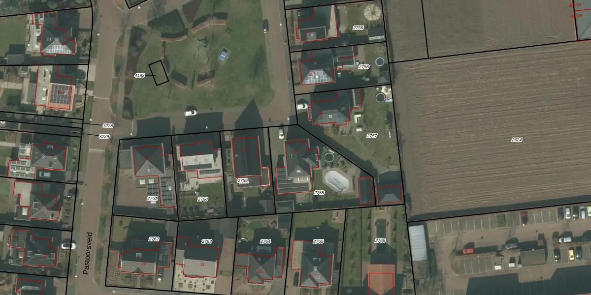 Het perceel waarop Pastoorsveld 21 staat heeft een oppervlakte van 771 m². Dit is een groot perceel. De perceeloppervlakte wordt geregistreerd door het Kadaster. Gedetailleerde informatie over de maten van dit perceel kunt u vinden in het rapport Kadastrale kaart met maatvoering van Pastoorsveld 21.