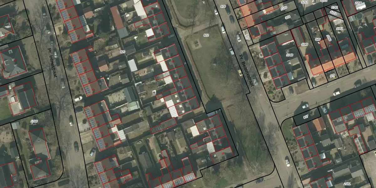 Het perceel waarop Pr. Beatrixstraat 29 staat heeft een oppervlakte van 9310 m². Dit is een zeer groot perceel. De perceeloppervlakte wordt geregistreerd door het Kadaster. Gedetailleerde informatie over de maten van dit perceel kunt u vinden in het rapport Kadastrale kaart met maatvoering van Pr. Beatrixstraat 29.