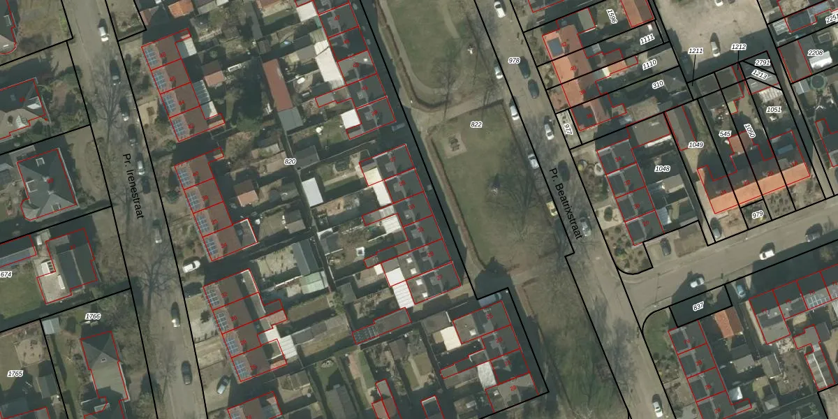 Het perceel waarop Pr. Beatrixstraat 33 staat heeft een oppervlakte van 9310 m². Dit is een zeer groot perceel. De perceeloppervlakte wordt geregistreerd door het Kadaster. Gedetailleerde informatie over de maten van dit perceel kunt u vinden in het rapport Kadastrale kaart met maatvoering van Pr. Beatrixstraat 33.