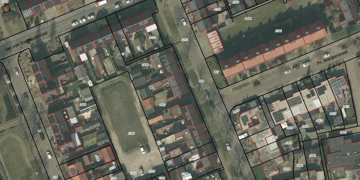 Het perceel waarop Pr. Bernhardstraat 39 staat heeft een oppervlakte van 1378 m². Dit is een zeer groot perceel. De perceeloppervlakte wordt geregistreerd door het Kadaster. Gedetailleerde informatie over de maten van dit perceel kunt u vinden in het rapport Kadastrale kaart met maatvoering van Pr. Bernhardstraat 39.