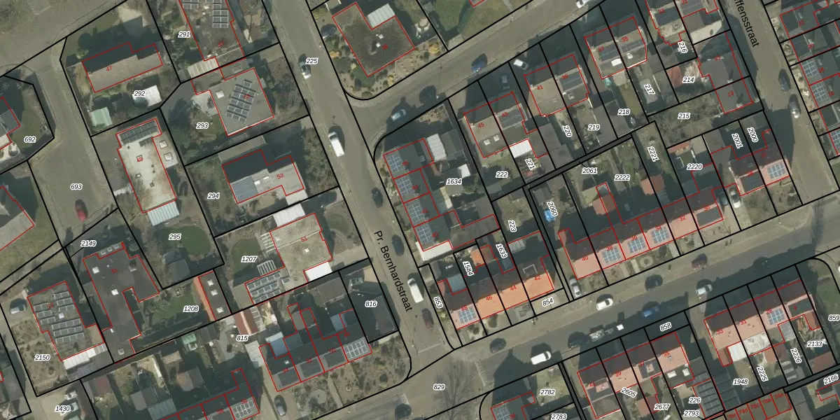 Het perceel waarop Pr. Bernhardstraat 42 staat heeft een oppervlakte van 848 m². Dit is een groot perceel. De perceeloppervlakte wordt geregistreerd door het Kadaster. Gedetailleerde informatie over de maten van dit perceel kunt u vinden in het rapport Kadastrale kaart met maatvoering van Pr. Bernhardstraat 42.