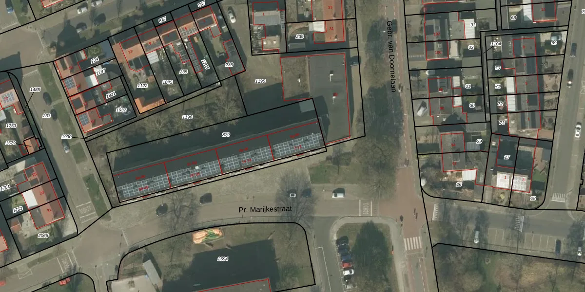 Het perceel waarop Pr. Marijkestraat 4 staat heeft een oppervlakte van 1270 m². Dit is een zeer groot perceel. De perceeloppervlakte wordt geregistreerd door het Kadaster. Gedetailleerde informatie over de maten van dit perceel kunt u vinden in het rapport Kadastrale kaart met maatvoering van Pr. Marijkestraat 4.
