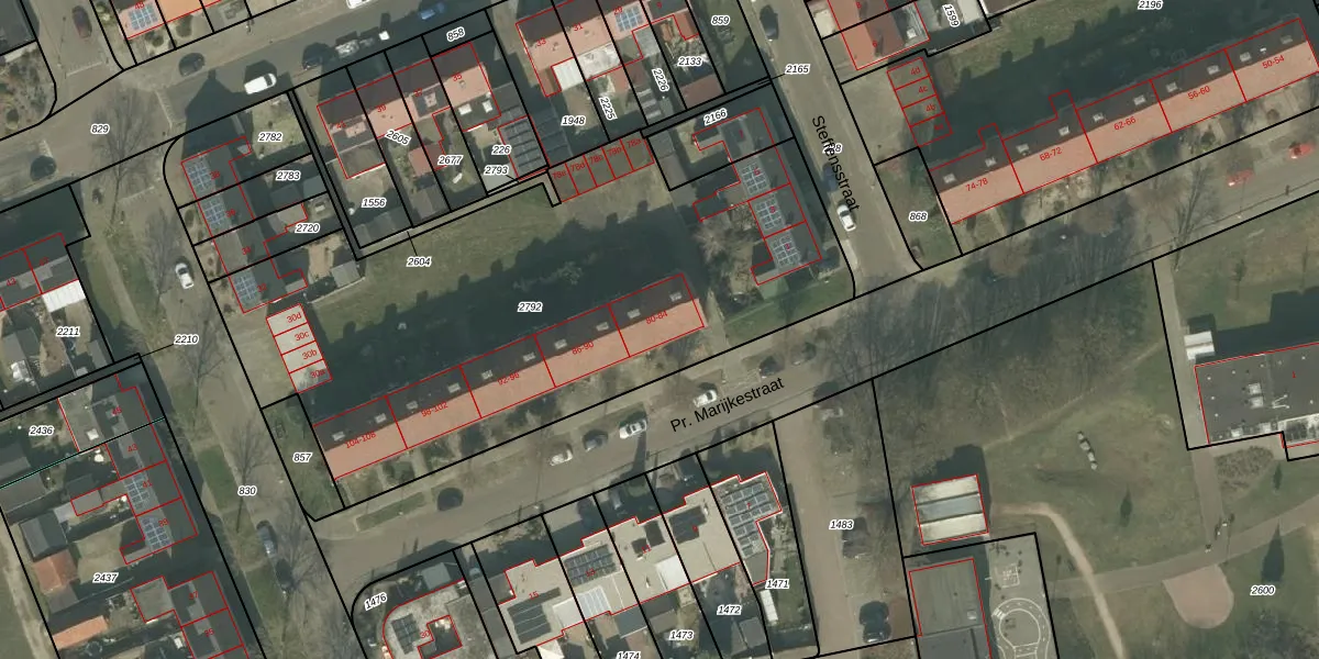 Pr. Marijkestraat 82 is gelegen op kadastraal perceel HOR01N2792. Deze kadastrale aanduiding is uniek en wordt gebruikt door het Kadaster om eigendomsrechten en andere zakelijke rechten vast te leggen. Het perceel maakt onderdeel uit van de kadastrale gemeente Horst.
