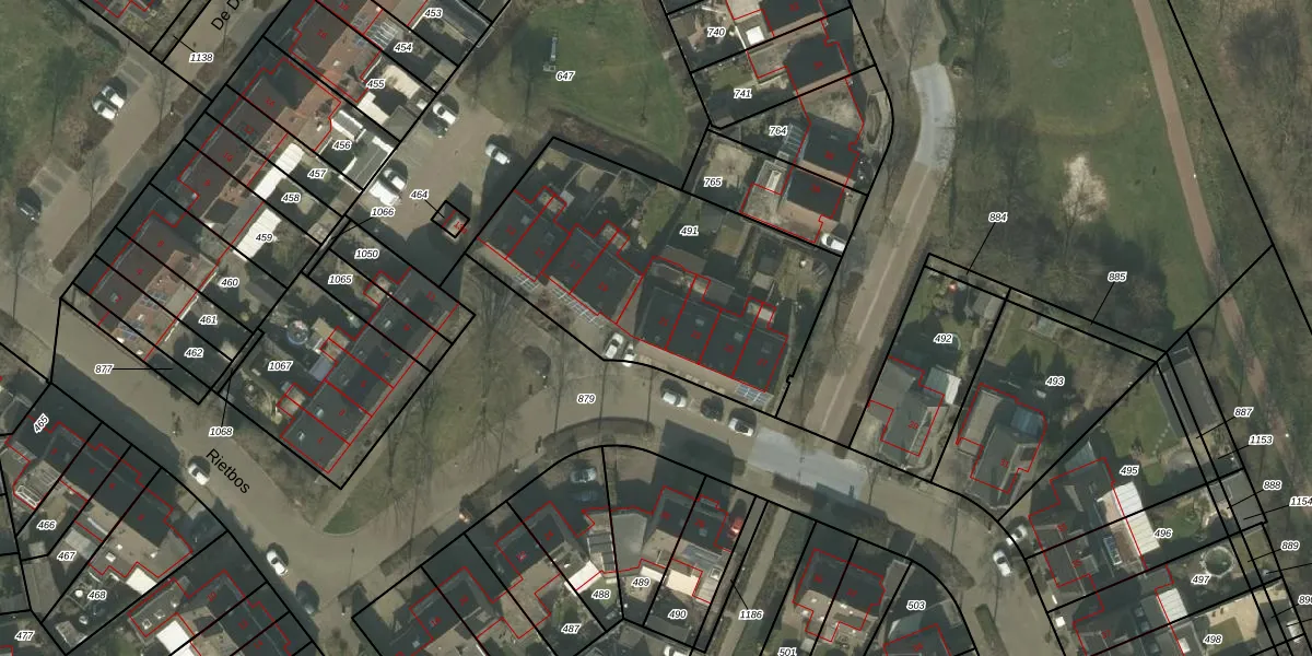 Het perceel waarop Rietbos 21 staat heeft een oppervlakte van 1320 m². Dit is een zeer groot perceel. De perceeloppervlakte wordt geregistreerd door het Kadaster. Gedetailleerde informatie over de maten van dit perceel kunt u vinden in het rapport Kadastrale kaart met maatvoering van Rietbos 21.