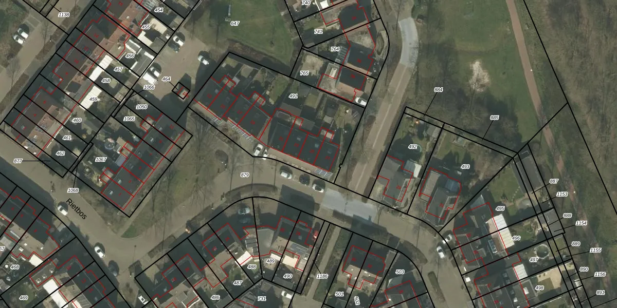 Het perceel waarop Rietbos 25 staat heeft een oppervlakte van 1320 m². Dit is een zeer groot perceel. De perceeloppervlakte wordt geregistreerd door het Kadaster. Gedetailleerde informatie over de maten van dit perceel kunt u vinden in het rapport Kadastrale kaart met maatvoering van Rietbos 25.