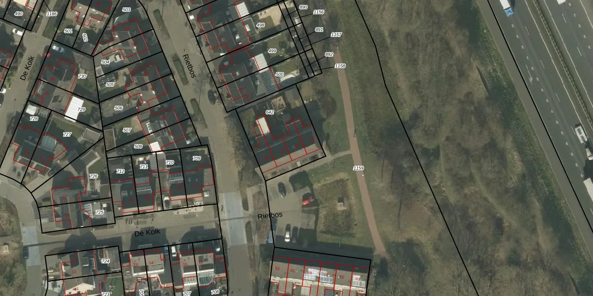 Het perceel waarop Rietbos 49 staat heeft een oppervlakte van 582 m². Dit is een groot perceel. De perceeloppervlakte wordt geregistreerd door het Kadaster. Gedetailleerde informatie over de maten van dit perceel kunt u vinden in het rapport Kadastrale kaart met maatvoering van Rietbos 49.
