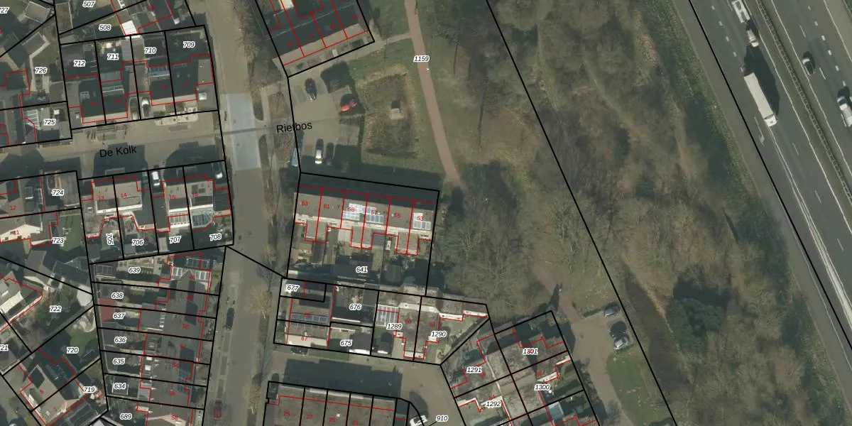 Rietbos 53 is gelegen op kadastraal perceel HOR01R641. Deze kadastrale aanduiding is uniek en wordt gebruikt door het Kadaster om eigendomsrechten en andere zakelijke rechten vast te leggen. Het perceel maakt onderdeel uit van de kadastrale gemeente Horst.