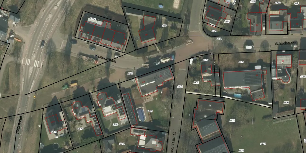 Het perceel waarop Schoolstraat 45 staat heeft een oppervlakte van 1155 m². Dit is een zeer groot perceel. De perceeloppervlakte wordt geregistreerd door het Kadaster. Gedetailleerde informatie over de maten van dit perceel kunt u vinden in het rapport Kadastrale kaart met maatvoering van Schoolstraat 45.