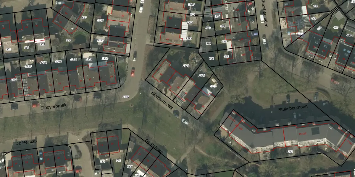 Het perceel waarop Slooyerbroek 38 staat heeft een oppervlakte van 573 m². Dit is een groot perceel. De perceeloppervlakte wordt geregistreerd door het Kadaster. Gedetailleerde informatie over de maten van dit perceel kunt u vinden in het rapport Kadastrale kaart met maatvoering van Slooyerbroek 38.
