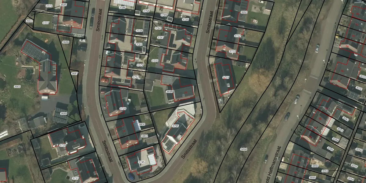 Gebruik de zoekbalk of klik op een perceel voor informatie over de adressen binnen dit perceel.