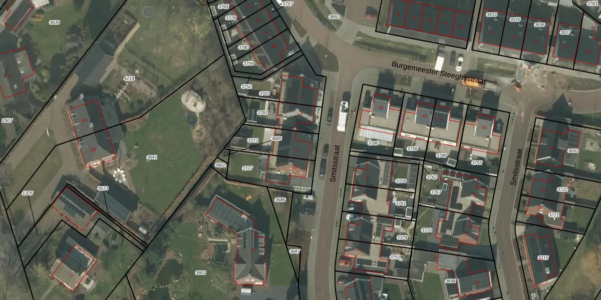 Het perceel waarop Smitsstraat 8 staat heeft een oppervlakte van 254 m². Dit is een middelgroot perceel. De perceeloppervlakte wordt geregistreerd door het Kadaster. Gedetailleerde informatie over de maten van dit perceel kunt u vinden in het rapport Kadastrale kaart met maatvoering van Smitsstraat 8.