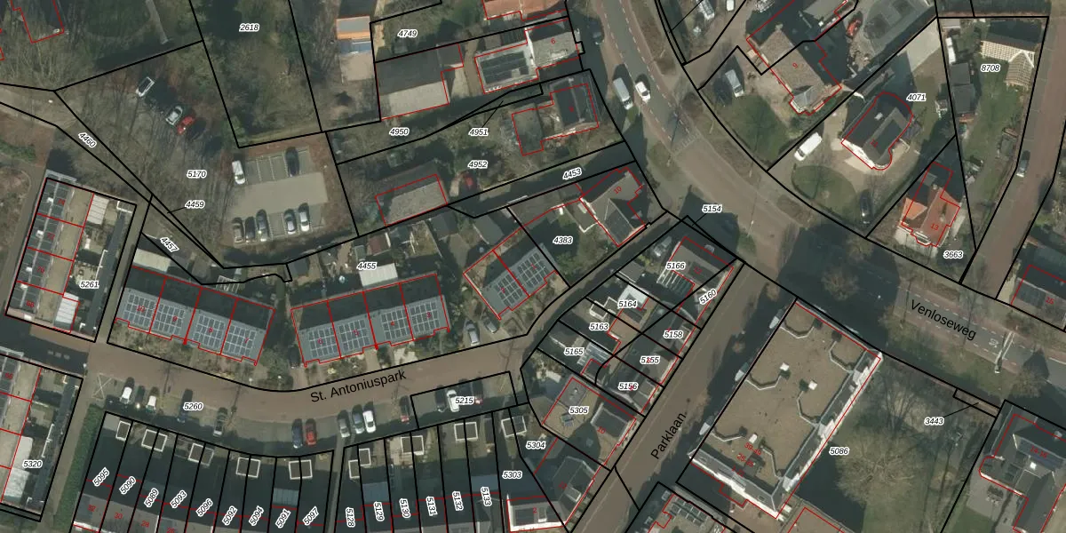 St. Antoniuspark 1 is gelegen op kadastraal perceel HOR01C4455. Deze kadastrale aanduiding is uniek en wordt gebruikt door het Kadaster om eigendomsrechten en andere zakelijke rechten vast te leggen. Het perceel maakt onderdeel uit van de kadastrale gemeente Horst.