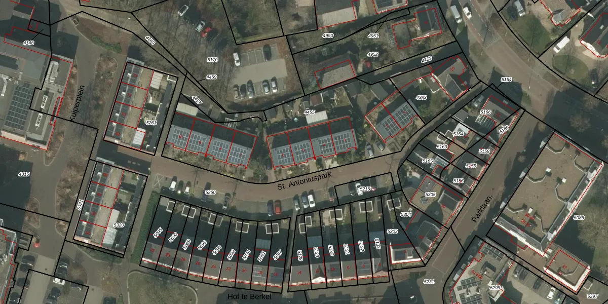 St. Antoniuspark 5 is gelegen op kadastraal perceel HOR01C4455. Deze kadastrale aanduiding is uniek en wordt gebruikt door het Kadaster om eigendomsrechten en andere zakelijke rechten vast te leggen. Het perceel maakt onderdeel uit van de kadastrale gemeente Horst.