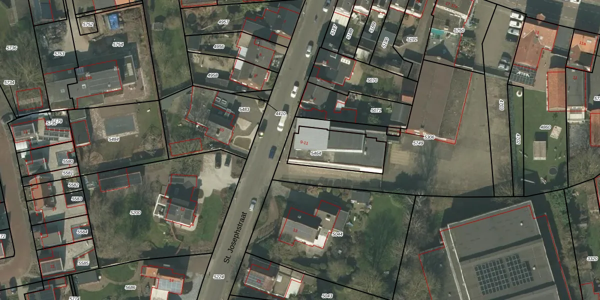 St. Josephstraat 11 is gelegen op kadastraal perceel HOR01D5464. Deze kadastrale aanduiding is uniek en wordt gebruikt door het Kadaster om eigendomsrechten en andere zakelijke rechten vast te leggen. Het perceel maakt onderdeel uit van de kadastrale gemeente Horst.