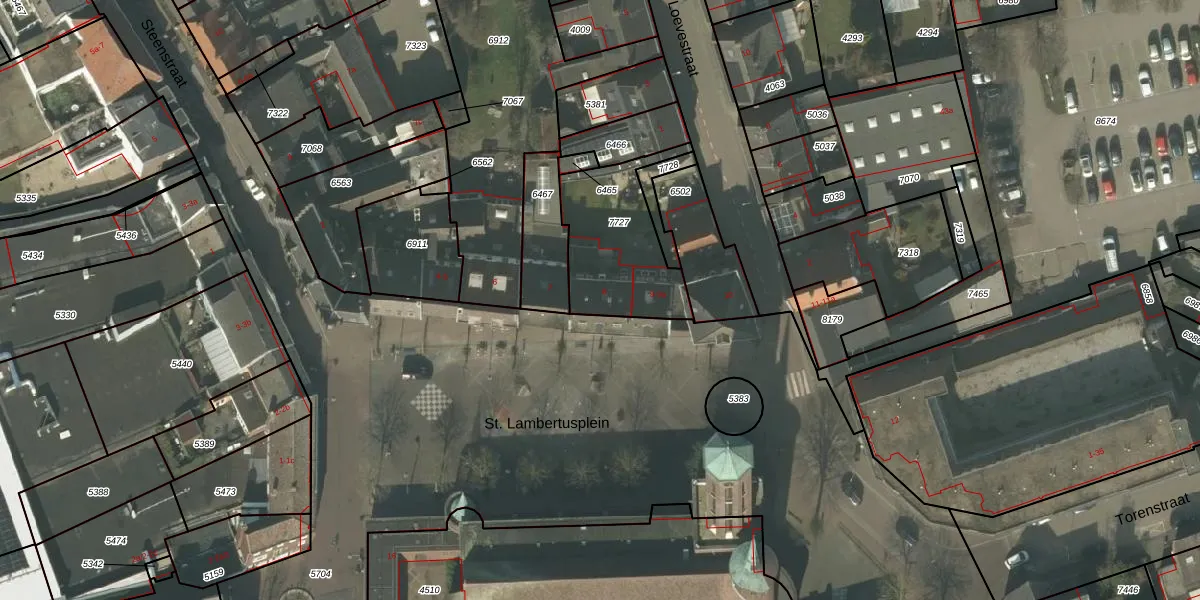 Het perceel waarop St. Lambertusplein 8 staat heeft een oppervlakte van 403 m². Dit is een groot perceel. De perceeloppervlakte wordt geregistreerd door het Kadaster. Gedetailleerde informatie over de maten van dit perceel kunt u vinden in het rapport Kadastrale kaart met maatvoering van St. Lambertusplein 8.