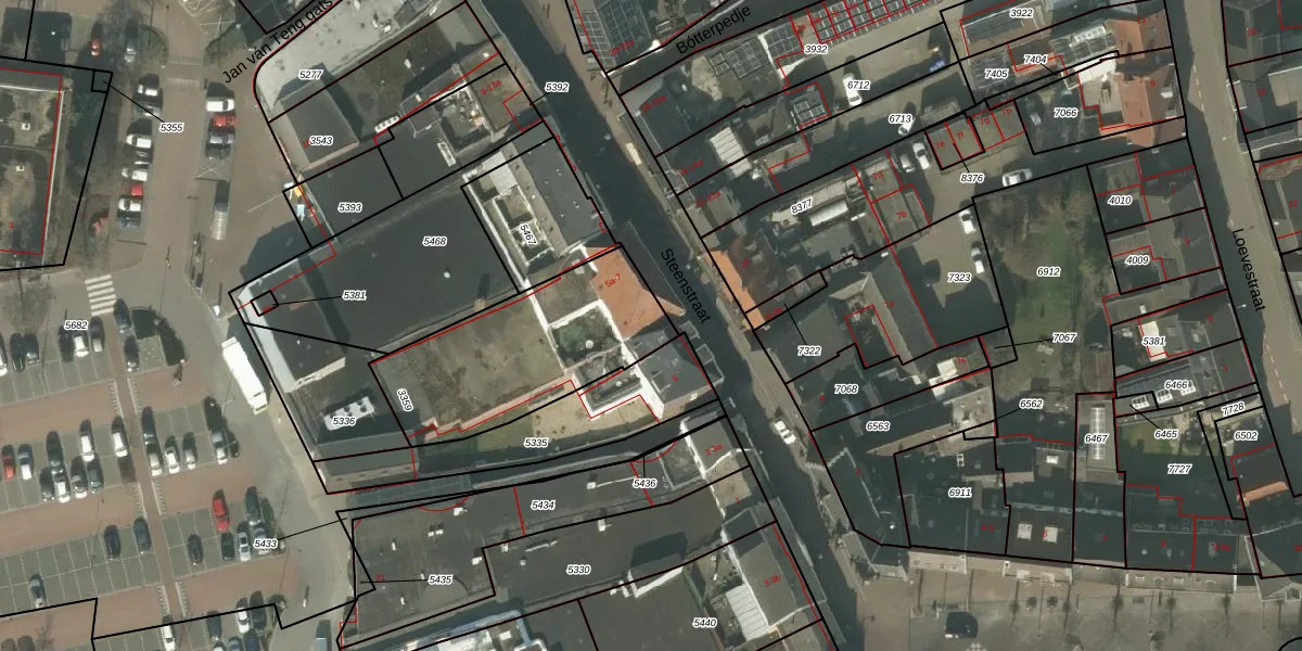 Het perceel waarop Steenstraat 5-a staat heeft een oppervlakte van 640 m². Dit is een groot perceel. De perceeloppervlakte wordt geregistreerd door het Kadaster. Gedetailleerde informatie over de maten van dit perceel kunt u vinden in het rapport Kadastrale kaart met maatvoering van Steenstraat 5-a.