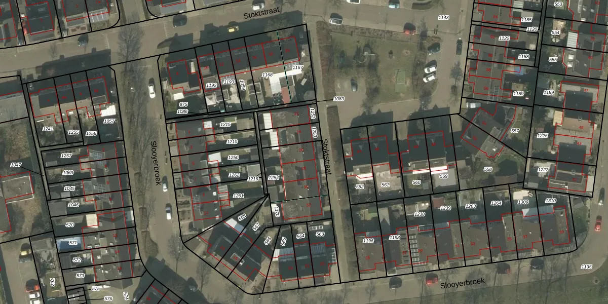 Het perceel waarop Stoktstraat 26 staat heeft een oppervlakte van 374 m². Dit is een groot perceel. De perceeloppervlakte wordt geregistreerd door het Kadaster. Gedetailleerde informatie over de maten van dit perceel kunt u vinden in het rapport Kadastrale kaart met maatvoering van Stoktstraat 26.