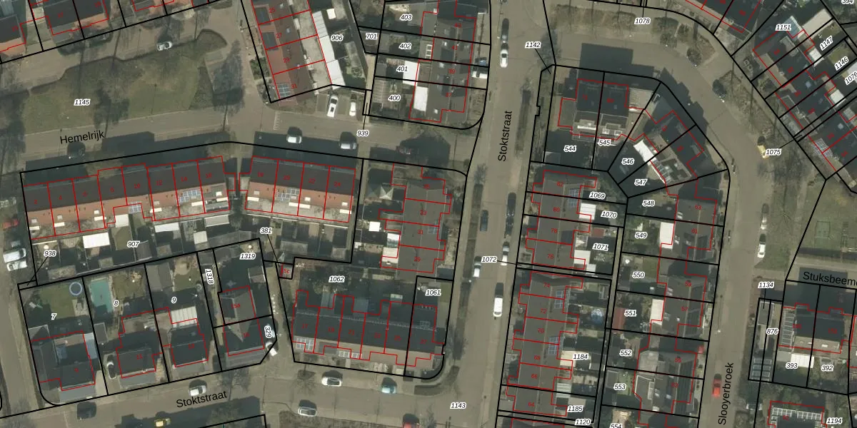 Het perceel waarop Stoktstraat 33 staat heeft een oppervlakte van 1323 m². Dit is een zeer groot perceel. De perceeloppervlakte wordt geregistreerd door het Kadaster. Gedetailleerde informatie over de maten van dit perceel kunt u vinden in het rapport Kadastrale kaart met maatvoering van Stoktstraat 33.