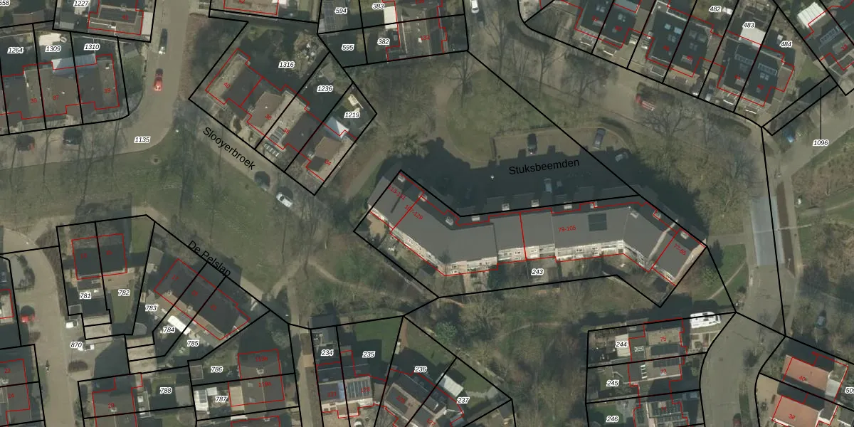 Het perceel waarop Stuksbeemden 129 staat heeft een oppervlakte van 1442 m². Dit is een zeer groot perceel. De perceeloppervlakte wordt geregistreerd door het Kadaster. Gedetailleerde informatie over de maten van dit perceel kunt u vinden in het rapport Kadastrale kaart met maatvoering van Stuksbeemden 129.
