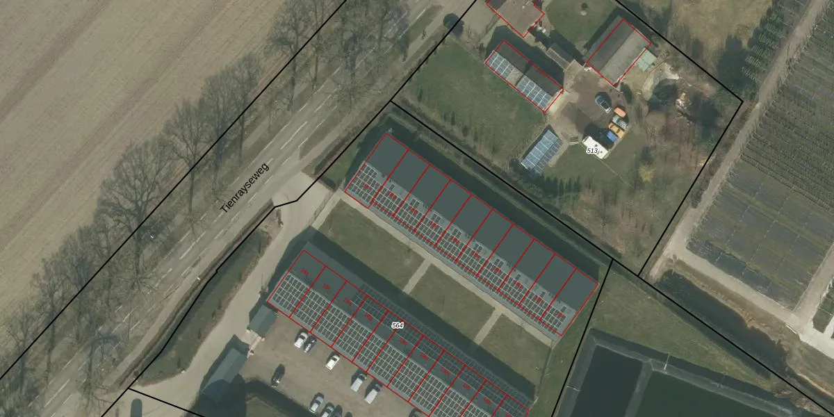 Tienrayseweg 18-b is gelegen op kadastraal perceel HOR01U564. Deze kadastrale aanduiding is uniek en wordt gebruikt door het Kadaster om eigendomsrechten en andere zakelijke rechten vast te leggen. Het perceel maakt onderdeel uit van de kadastrale gemeente Horst.