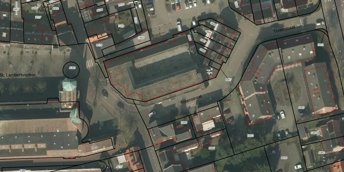 Het perceel waarop Torenstraat 21 staat heeft een oppervlakte van 1635 m². Dit is een zeer groot perceel. De perceeloppervlakte wordt geregistreerd door het Kadaster. Gedetailleerde informatie over de maten van dit perceel kunt u vinden in het rapport Kadastrale kaart met maatvoering van Torenstraat 21.