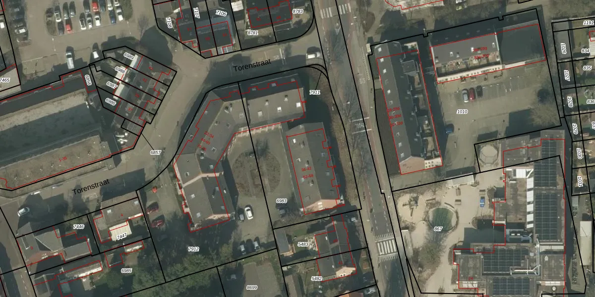 Torenstraat 36 is gelegen op kadastraal perceel HOR01B6983. Deze kadastrale aanduiding is uniek en wordt gebruikt door het Kadaster om eigendomsrechten en andere zakelijke rechten vast te leggen. Het perceel maakt onderdeel uit van de kadastrale gemeente Horst.