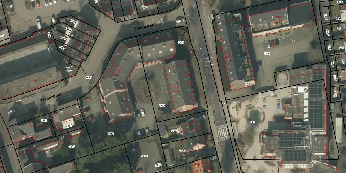 Torenstraat 38 is gelegen op kadastraal perceel HOR01B6983. Deze kadastrale aanduiding is uniek en wordt gebruikt door het Kadaster om eigendomsrechten en andere zakelijke rechten vast te leggen. Het perceel maakt onderdeel uit van de kadastrale gemeente Horst.