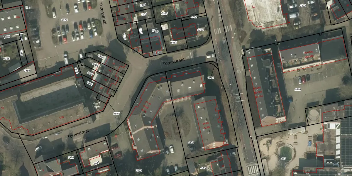 Torenstraat 56 is gelegen op kadastraal perceel HOR01B6983. Deze kadastrale aanduiding is uniek en wordt gebruikt door het Kadaster om eigendomsrechten en andere zakelijke rechten vast te leggen. Het perceel maakt onderdeel uit van de kadastrale gemeente Horst.