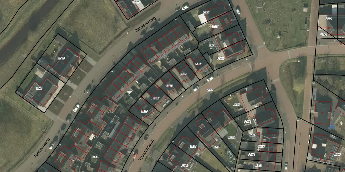 Gebruik de zoekbalk of klik op een perceel voor informatie over de adressen binnen dit perceel.