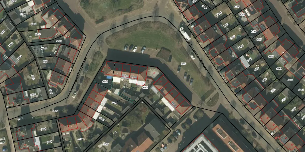 Van Bronckhorststraat 45 is gelegen op kadastraal perceel HOR01B8702. Deze kadastrale aanduiding is uniek en wordt gebruikt door het Kadaster om eigendomsrechten en andere zakelijke rechten vast te leggen. Het perceel maakt onderdeel uit van de kadastrale gemeente Horst.
