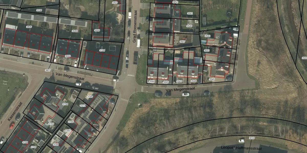 Gebruik de zoekbalk of klik op een perceel voor informatie over de adressen binnen dit perceel.