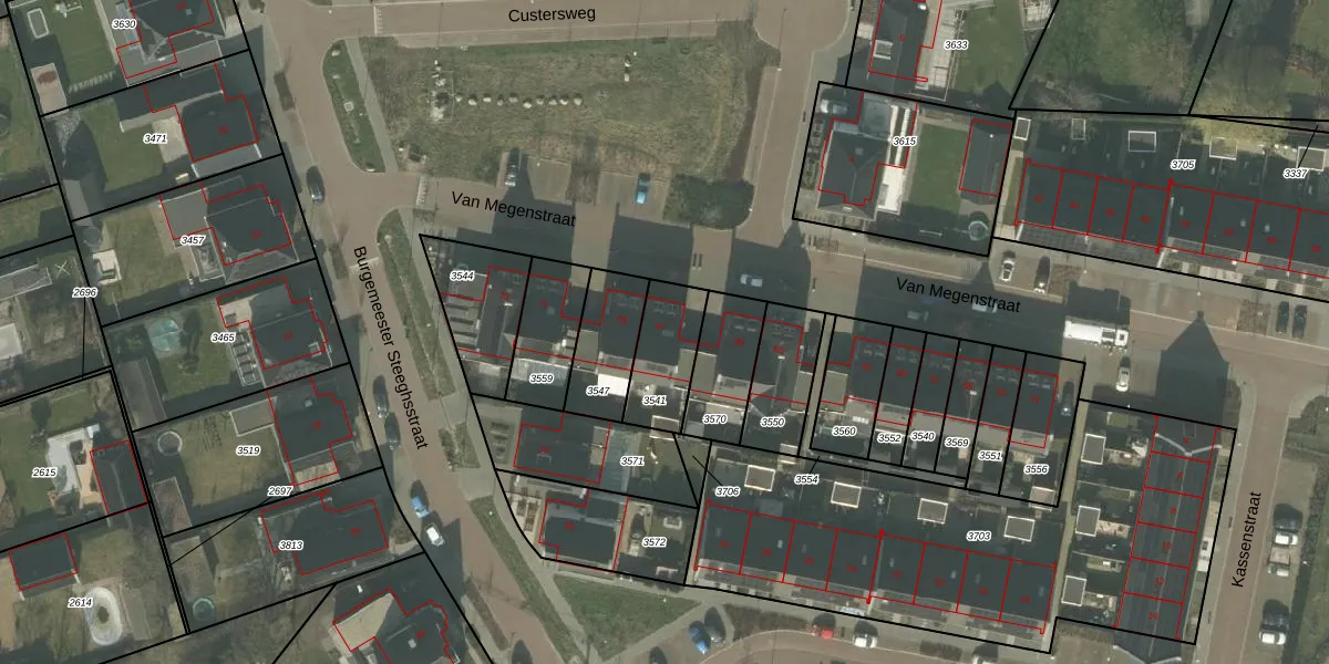 Van Megenstraat 67 is gelegen op kadastraal perceel HOR01M3541. Deze kadastrale aanduiding is uniek en wordt gebruikt door het Kadaster om eigendomsrechten en andere zakelijke rechten vast te leggen. Het perceel maakt onderdeel uit van de kadastrale gemeente Horst.