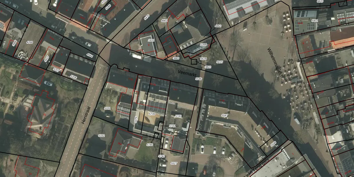 Het perceel waarop Veemarkt 4 staat heeft een oppervlakte van 570 m². Dit is een groot perceel. De perceeloppervlakte wordt geregistreerd door het Kadaster. Gedetailleerde informatie over de maten van dit perceel kunt u vinden in het rapport Kadastrale kaart met maatvoering van Veemarkt 4.