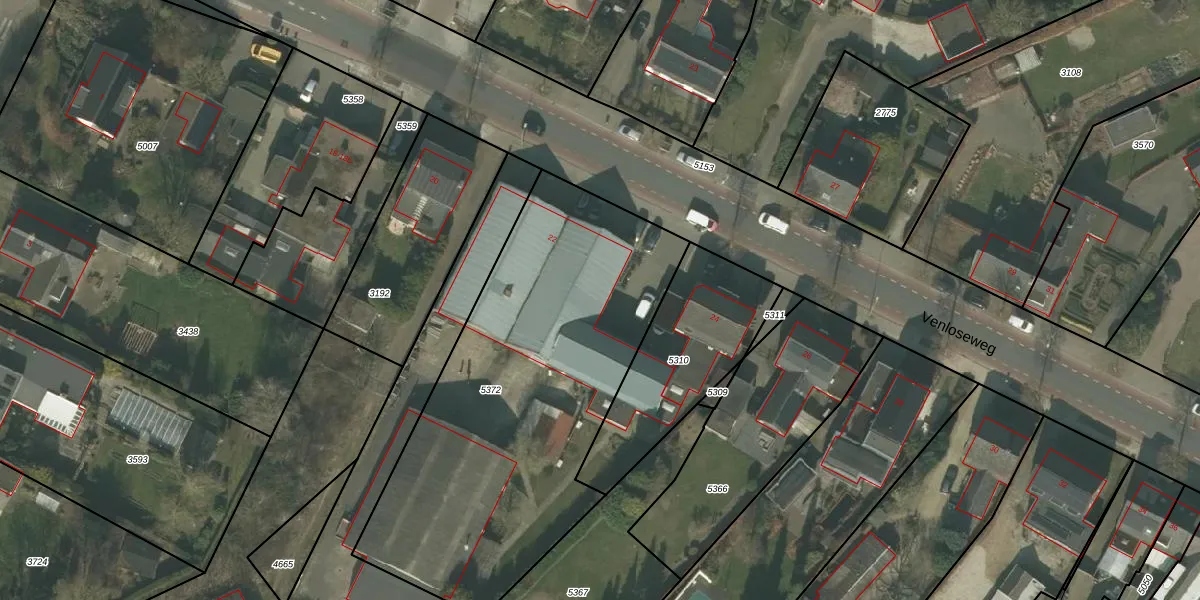Venloseweg 22-v is gelegen op kadastraal perceel HOR01C5372. Deze kadastrale aanduiding is uniek en wordt gebruikt door het Kadaster om eigendomsrechten en andere zakelijke rechten vast te leggen. Het perceel maakt onderdeel uit van de kadastrale gemeente Horst.