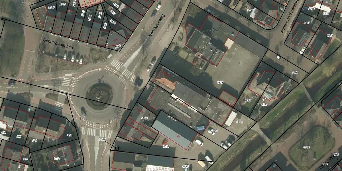 Het perceel waarop Venrayseweg 16-f staat heeft een oppervlakte van 830 m². Dit is een groot perceel. De perceeloppervlakte wordt geregistreerd door het Kadaster. Gedetailleerde informatie over de maten van dit perceel kunt u vinden in het rapport Kadastrale kaart met maatvoering van Venrayseweg 16-f.