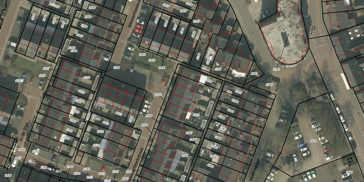 Het perceel waarop Weisterbeekstraat 21 staat heeft een oppervlakte van 588 m². Dit is een groot perceel. De perceeloppervlakte wordt geregistreerd door het Kadaster. Gedetailleerde informatie over de maten van dit perceel kunt u vinden in het rapport Kadastrale kaart met maatvoering van Weisterbeekstraat 21.