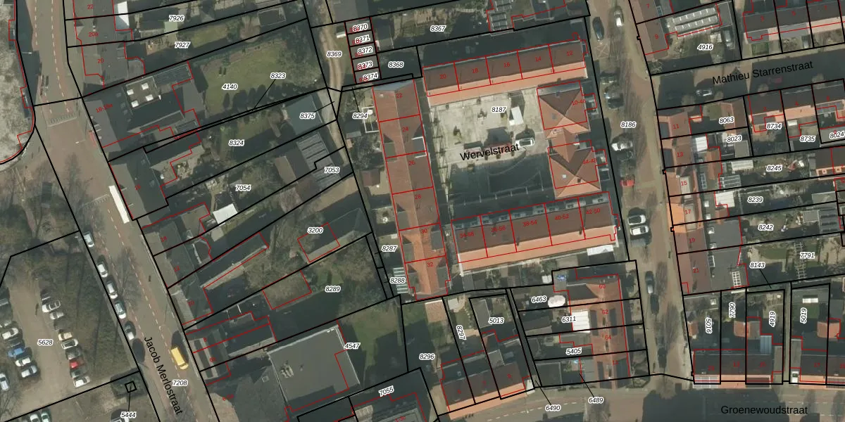 Wervelstraat 28 is gelegen op kadastraal perceel HOR01B8187. Deze kadastrale aanduiding is uniek en wordt gebruikt door het Kadaster om eigendomsrechten en andere zakelijke rechten vast te leggen. Het perceel maakt onderdeel uit van de kadastrale gemeente Horst.