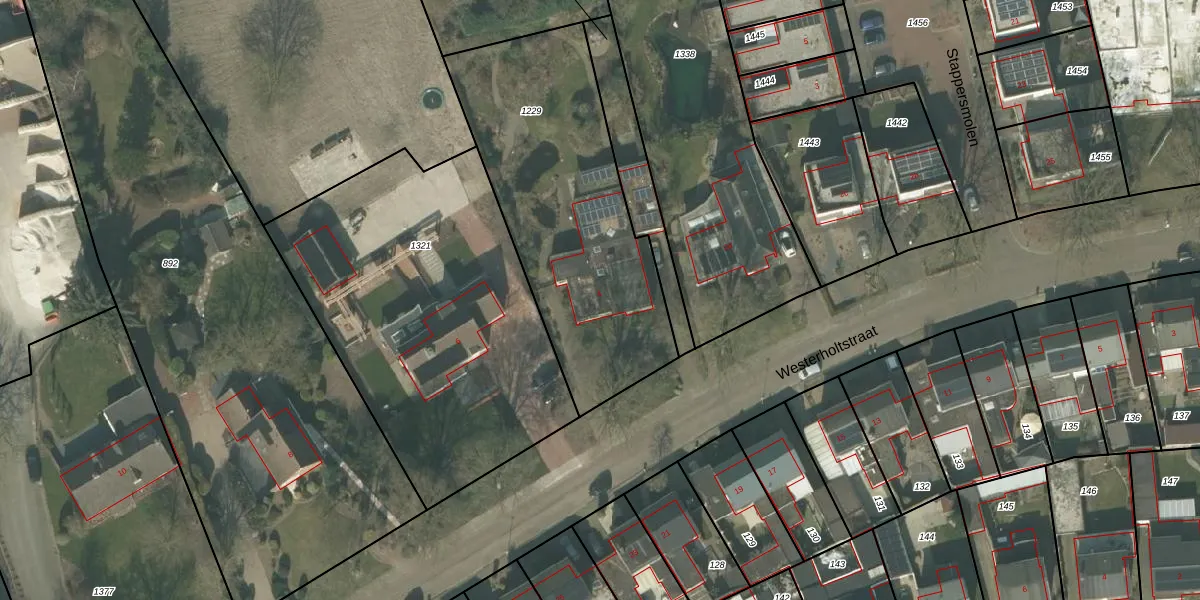 Gebruik de zoekbalk of klik op een perceel voor informatie over de adressen binnen dit perceel.