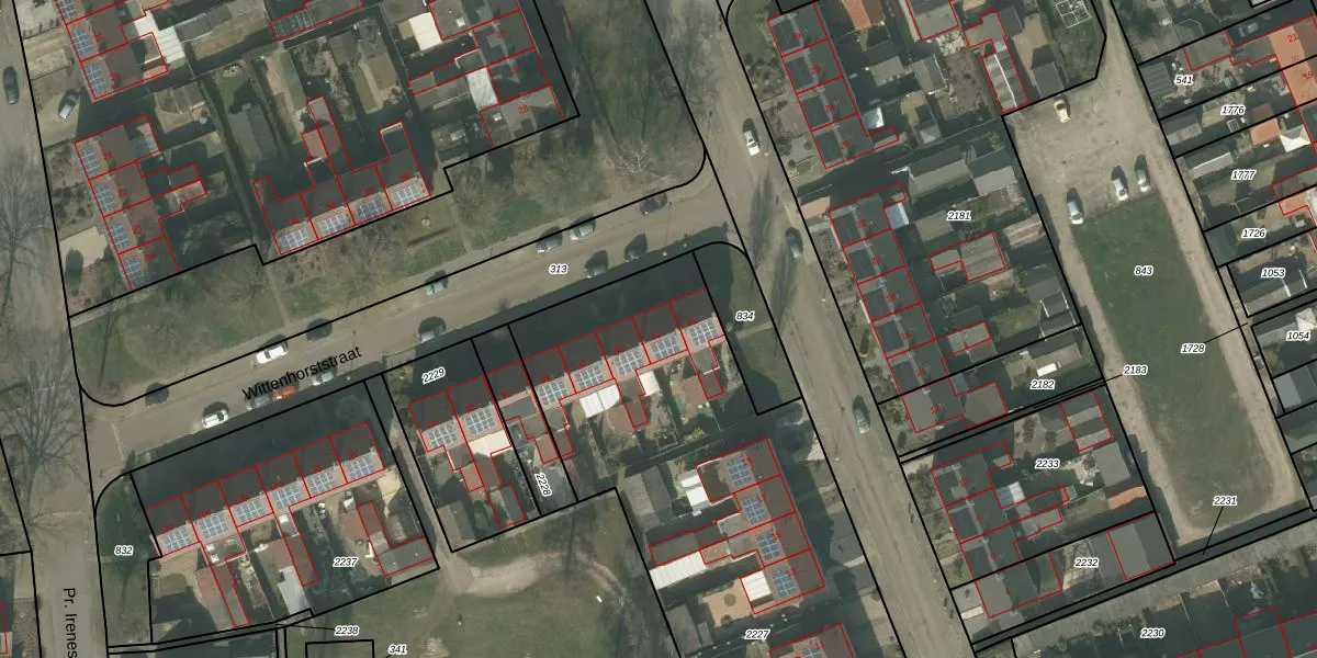 Het perceel waarop Wittenhorststraat 83 staat heeft een oppervlakte van 3155 m². Dit is een zeer groot perceel. De perceeloppervlakte wordt geregistreerd door het Kadaster. Gedetailleerde informatie over de maten van dit perceel kunt u vinden in het rapport Kadastrale kaart met maatvoering van Wittenhorststraat 83.