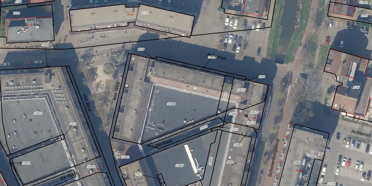 Het perceel waarop Achterom 57 staat heeft een oppervlakte van 1952 m². Dit is een zeer groot perceel. De perceeloppervlakte wordt geregistreerd door het Kadaster. Gedetailleerde informatie over de maten van dit perceel kunt u vinden in het rapport Kadastrale kaart met maatvoering van Achterom 57.